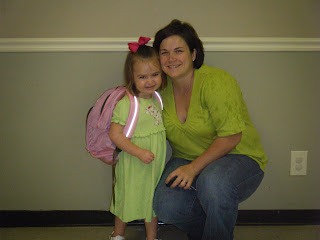 Ava started school on August 23, its hard to believe she is already in kindergarten. On the sunday before school started, we went to a "blessing of the backpacks" at church. The girls loved that. Then monday Ava woke up and was pretty excited to be starting school. Until Anna Kate woke up that is. Anna Kate refused to tell her have a good day, hug her or anything. She DID NOT want Ava to go to school. She started crying, then Ava started crying. We thought we had it under control until we got to the school, Anna Kate was crying really LOUD "i want my aya" no aya" I know the parents in Ava's class must think we are crazy. I got a few pictures of the morning, most after the tears started. I didnt get any pictures of Ava at her desk the first day, because Anna Kate was clinging to her crying and Ava was clinging to Brannon trying to figure out why Kates was so upset. It was a VERY emotional morning. In the past 2 weeks, we have done much better, and Anna Kate actually starts her school in the morning. Ava is loving every minute of it, and comes home every day ready to tell us all about it.